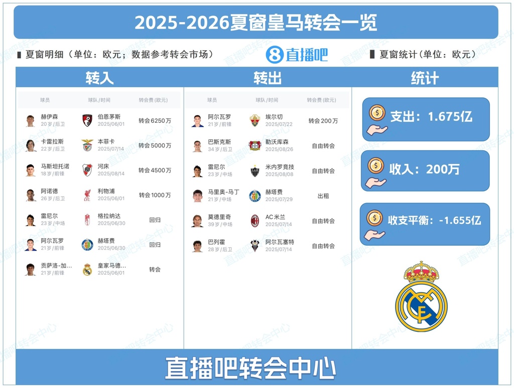 总体而言,皇马的这份引援 “成绩单” 呈积极态势,四名新援中有三人已实现身价上涨,这既印证了市场对球员当下表现的认可,也体现出对其未来潜力的看好
